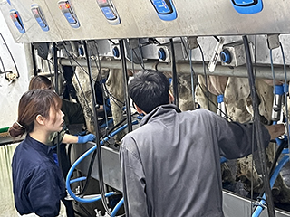搾乳がこんなに難しいとは思いませんでした。乳頭は温かく、1頭の牛でこんなにも乳が出ることにも感動。搾乳後もしっかり乳頭ケアがなされ、清掃も行き届いていることから、大切に育てられていると感じました。